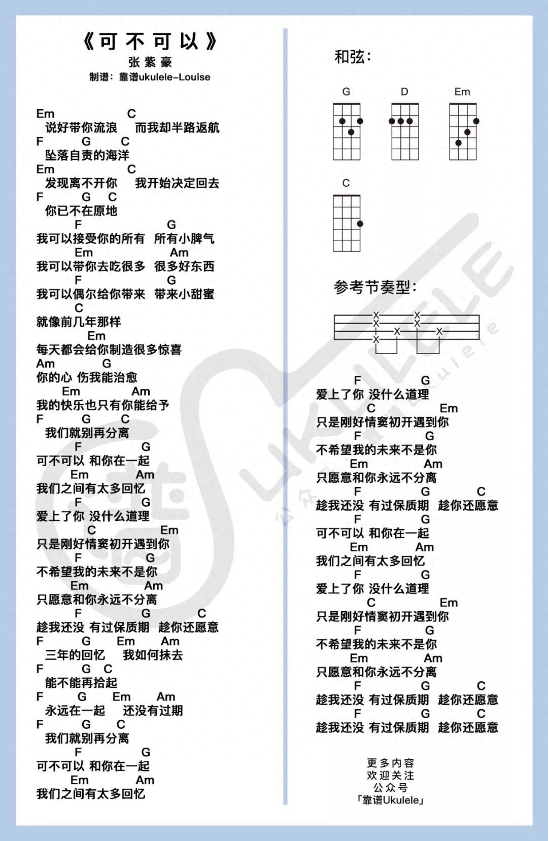 尤克里里弹唱谱 - 「可不可以」张紫豪