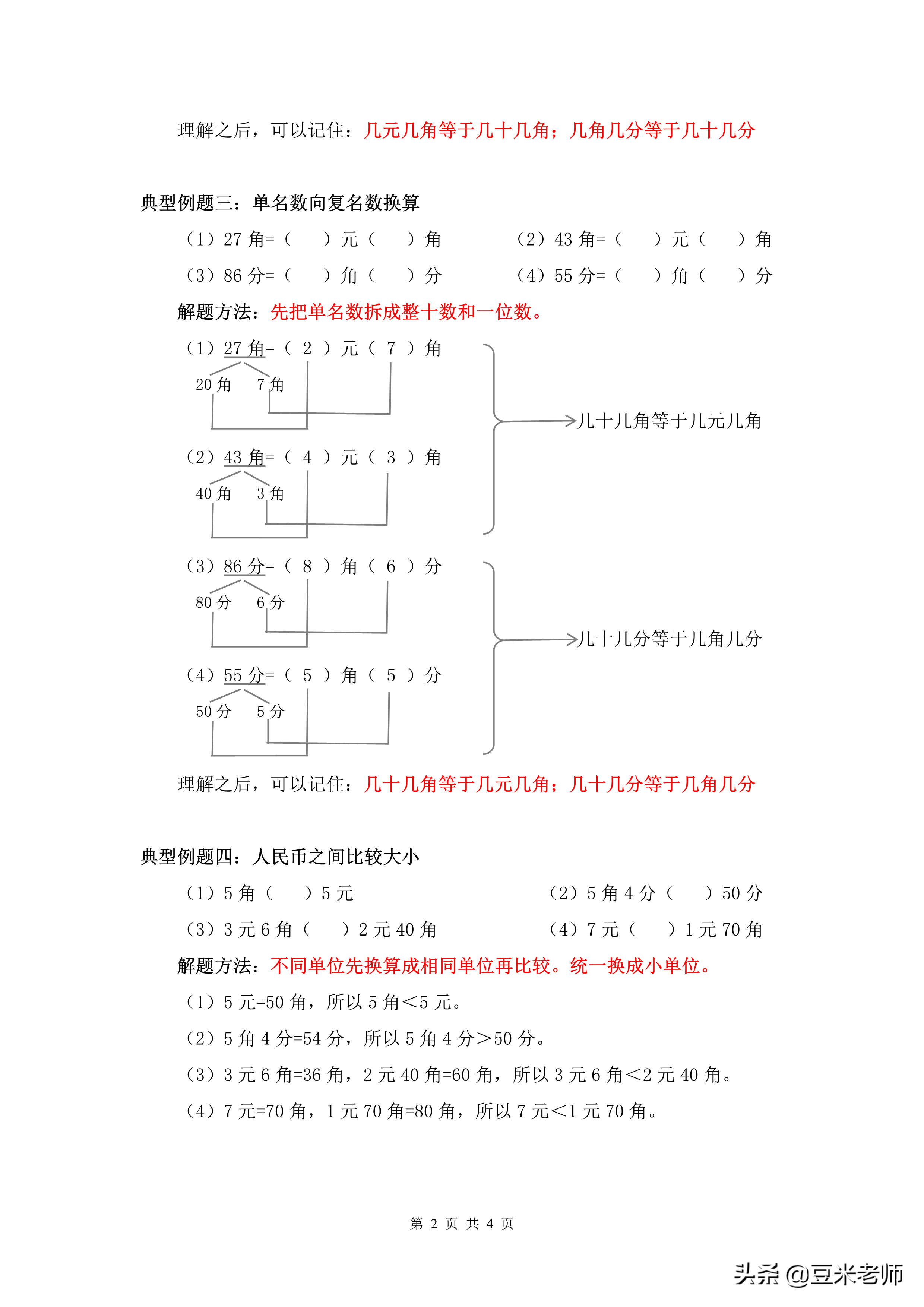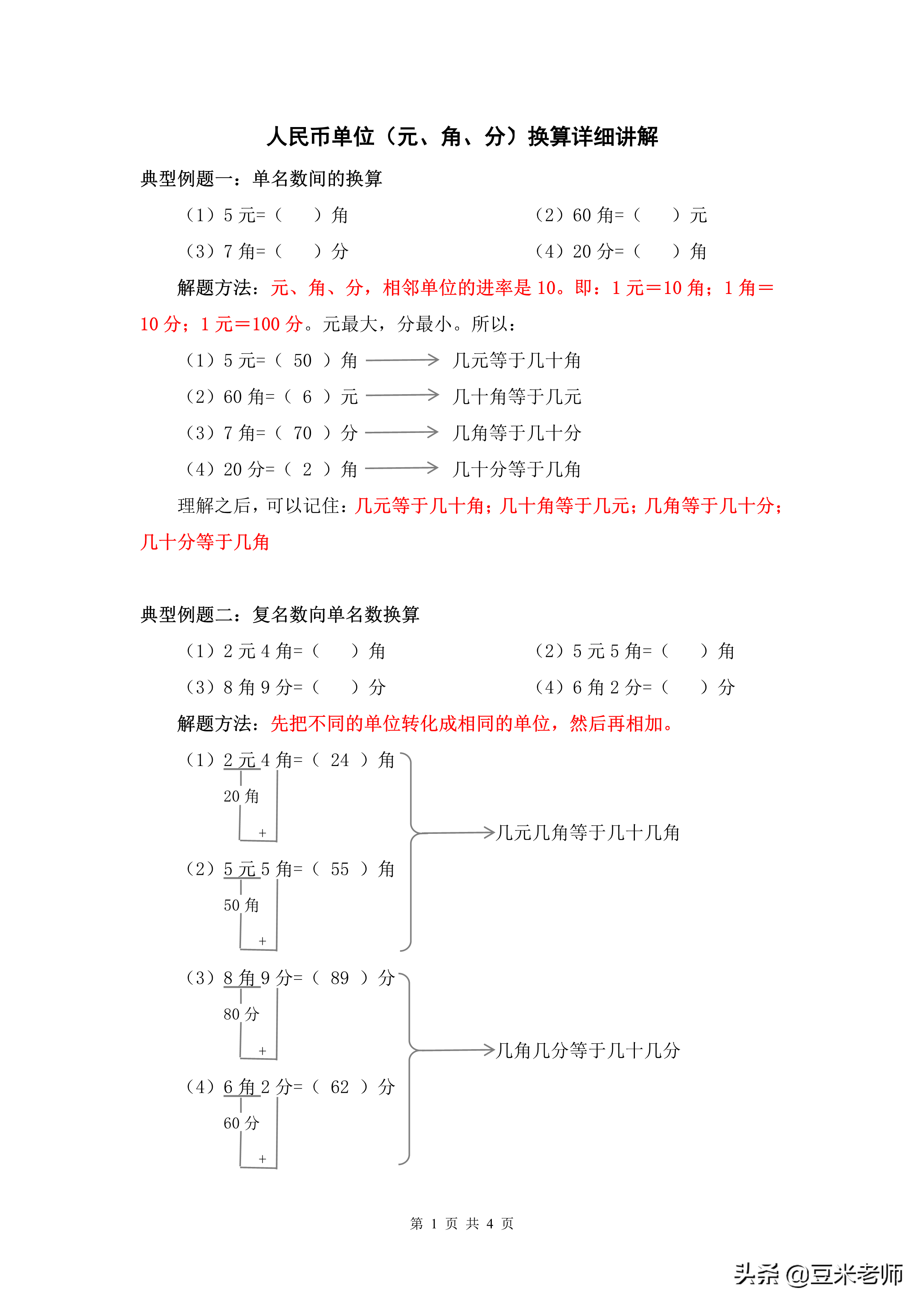 下面,豆米老师就为同学们具体分析一下人民币单位换算的方法,希望能给同学们带来帮助。