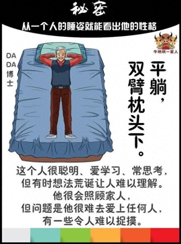 在趣味心理学中,从一个人的睡觉姿势也能看出他的性格特征,你听说过吗?可能会有人觉得这是无稽之谈,不过呢,这些分析也是有一定依据的。毕竟,一个人的行为习惯不是一朝一夕形成的,是受到很多外在和内在因素影响才造成的。这其中,就有很关键的一个影响因素——性格。有怎样的性格就会有怎样的行动,睡觉也不例外。不信,咱们就一起看一看吧。