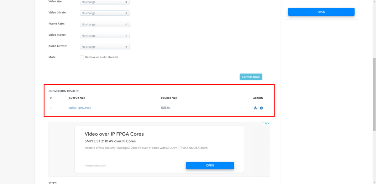 全都设置好之后,点击[Convert Now!]即可进行转换,要稍等一会,速度不算快,转换成功之后在下方就可以进行播放与下载。