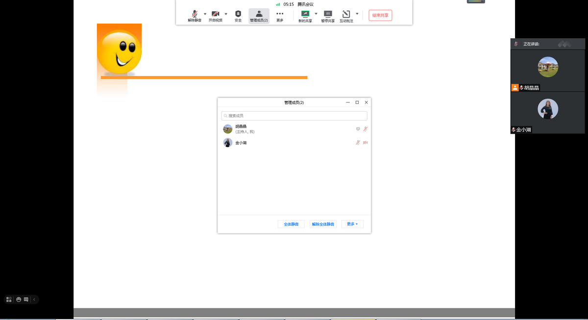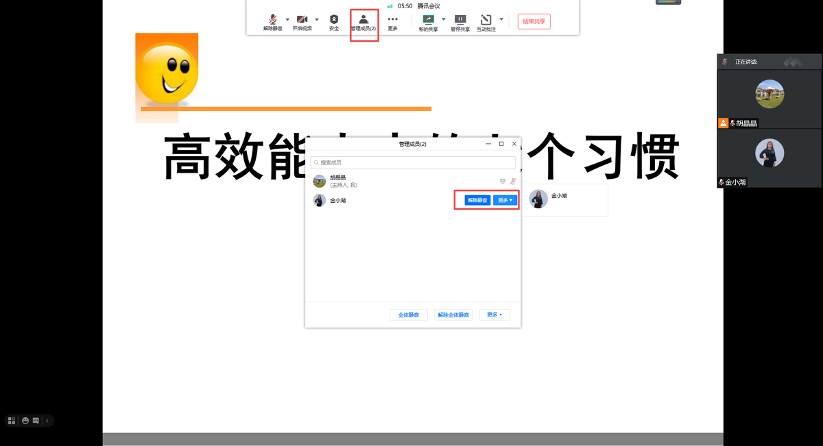 ,可以展开操作列表,进行声音、视频、成员、批注管理。