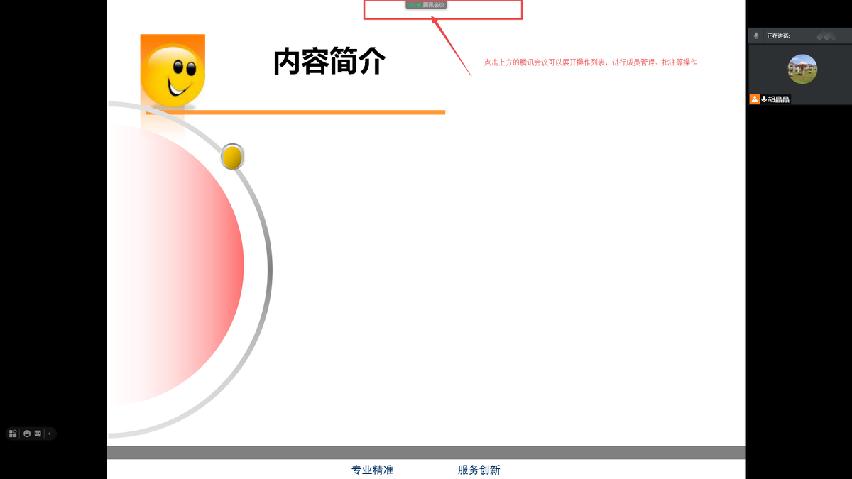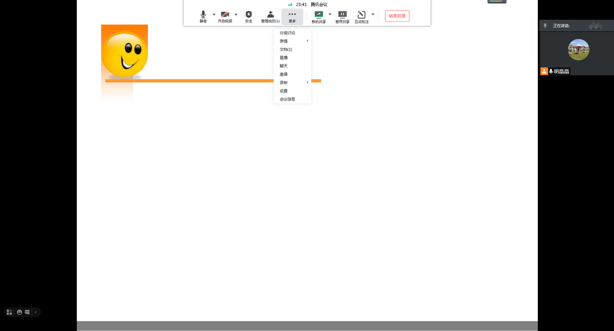备注,通过点击上方腾讯会议展开列表的操作过程并不会被大家看见,只是会显示最终的效果。