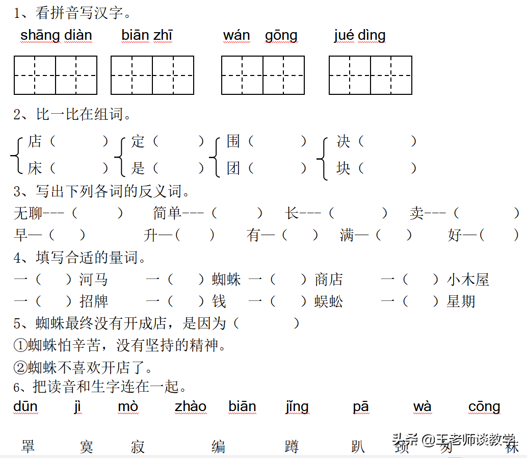 ?1、读课文第一自然,想一想蜘蛛为什么开店?