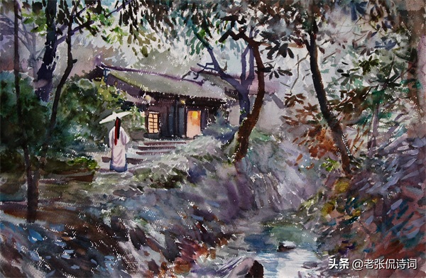 ?这两句古诗交代了佛寺当中禅房的所在之处,和山林、花木交相辉映,融为一体,更加突出了其和世俗生活隔绝的意味。