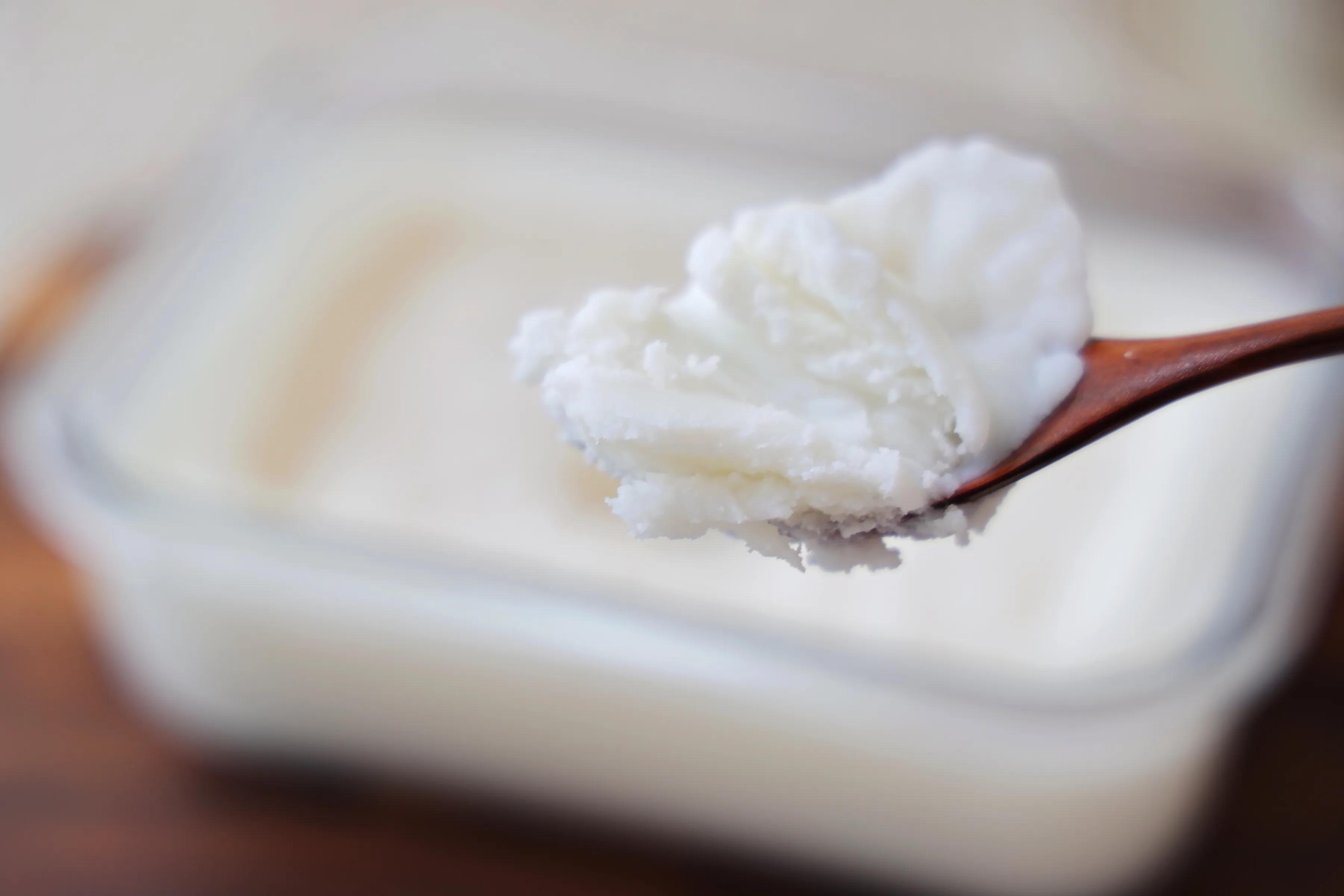 9、再倒入到可以密封的容器里,盖上盖子放在冰箱冷藏定型凝固。凝固好的猪油雪白雪白的,闻起来也很香。炒青菜的时候加一点点,青菜会很香很好吃,也可以用来做中式的酥皮蛋黄酥!用处非常大!