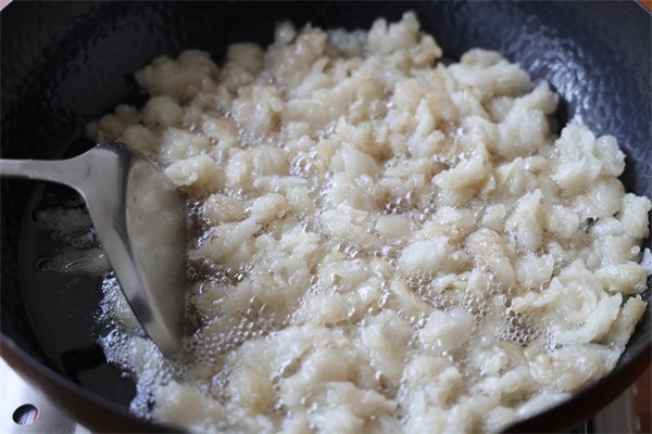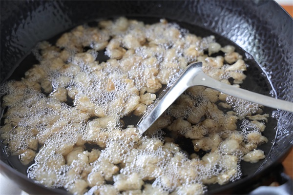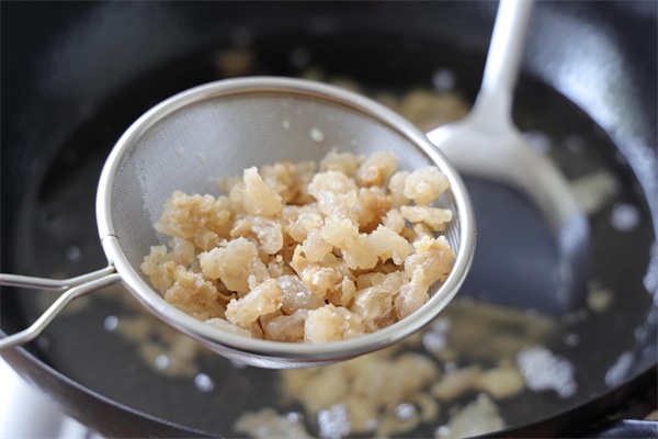7、把油渣打捞出来;