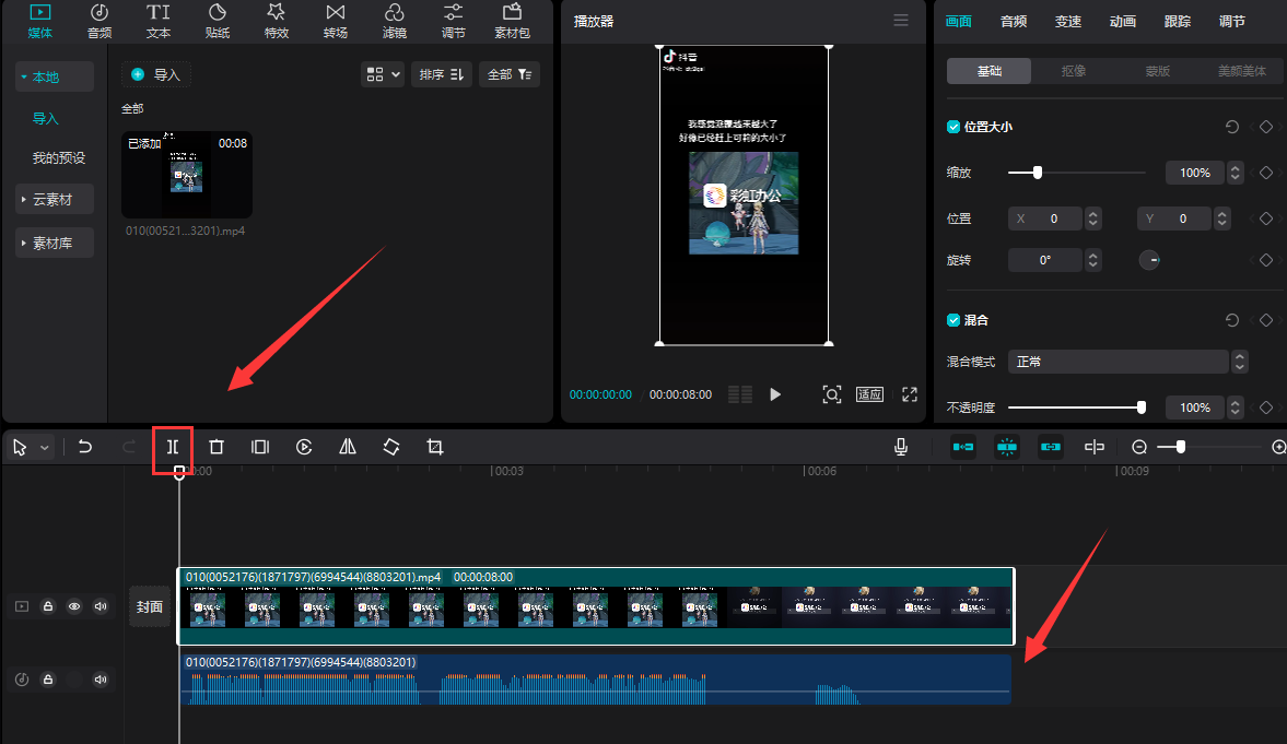 这虽然看起来是一款视频剪辑软件但是音频我们在里面也是可以进行操作的。