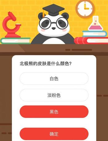 北极熊的皮肤是什么颜色? 白色、淡粉色、黑色。这是森林驿站8月28日森林小课堂的题目,众所周知北极熊的毛发是白色的,那么它的皮肤是什么颜色呢?在上述三个选项中哪一个才是这道题的正确答案呢,一起来看看吧!