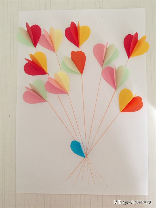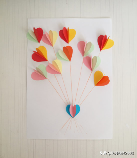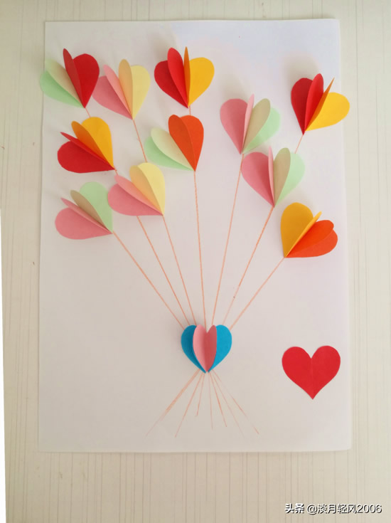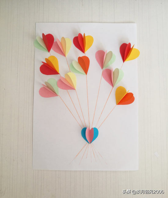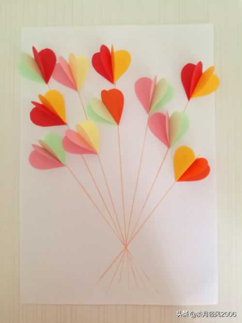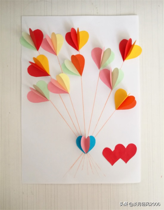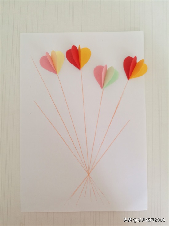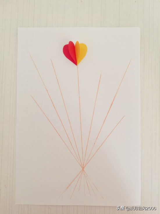 这个贺卡做完了,只用一种形状,就是爱心形状,加上几条直线就完成一个贺卡,简单好学。