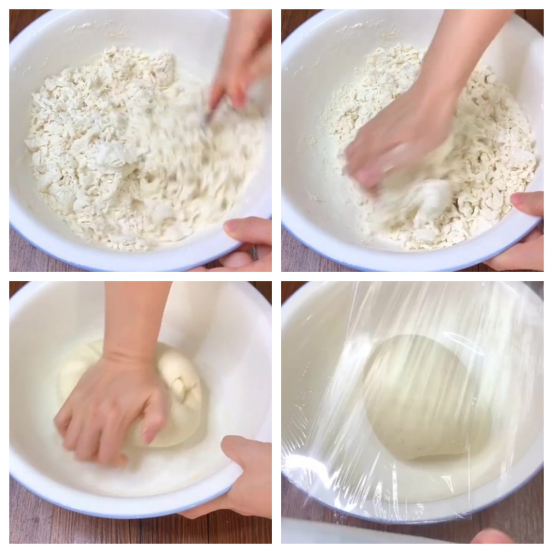 ,最后上手开始揉面,要注意温水的温度在35℃以下才更好。