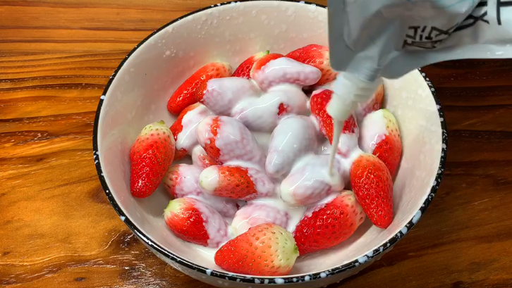 来个特写,是不是很诱人?一碗草莓酸奶,加上一部自己喜欢的电影,边看边吃,生活不要太惬意了。