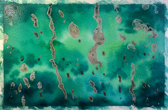 5 、等颜色完全干透,我们用橡皮把留白液擦掉,雨滴的形状就留了出来。