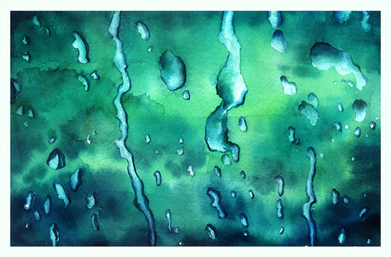 7 、画雨滴的时候尽量注意中间要亮一些,用清水渐渐从有颜色到无色的过渡,等稍微干一些的时候,用重一些的颜色勾勒一下边缘,基本效果就出来了。