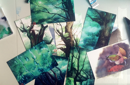 将自己画好的画做成明信片,将雨中的思念寄给远方的人吧。