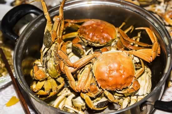 螃蟹是一种水产,为了避免感染寄生虫,螃蟹需要充分热透之后才能进行食用,这样更安全和卫生,一般情形下,蒸10-15分钟就可以了。螃蟹在蒸的时候,将肚子朝上,螃蟹背壳向下放,这样螃蟹的膏汁就不会流失,鲜味就锁住了。