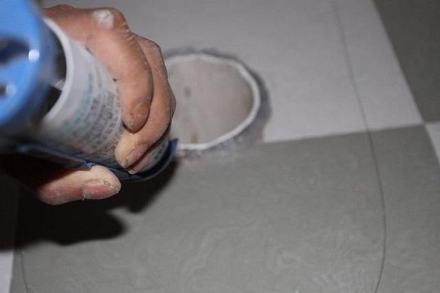 沿着污水管管口的地方,打一圈玻璃胶,同时根据画线的地方,打上玻璃胶,这样密封更加的严实。
