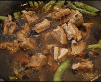 【排骨炖豆角】是以排骨和豆角为主要食材的家常菜,是东北菜的经典菜式,这道菜老少皆宜,并且油而不腻,口味咸鲜,营养价值丰富。