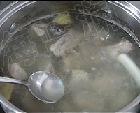 3. 大火烧开撇净浮沫及花椒粒,盖盖转小火炖40分钟。