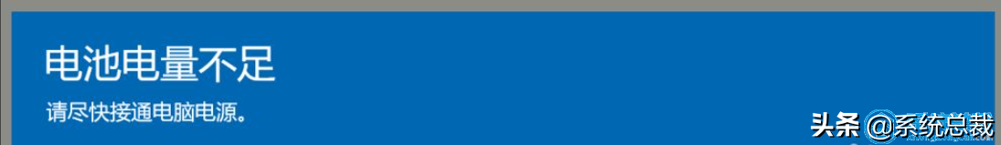 5、把用电量耗费在这个水准下列的情况下,收到了“电池容量不够”的弹出框。先别着急着关闭它,这时连接开关电源适配器(充电器)。