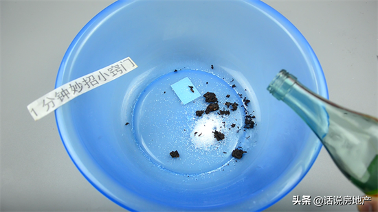 然后我们倒入几滴白醋,用白醋来浸泡衣服,能够起到防止衣服掉色的作用。