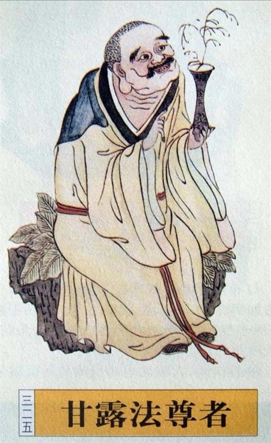 2.甘露。①.观音菩萨玉净瓶中的甘露水,法力无边,能救苦救难,起死回生。②.第325尊罗汉名,甘露法尊者,也叫甘露尊者,降甘露法雨普救众生,功德圆满,终获证果。