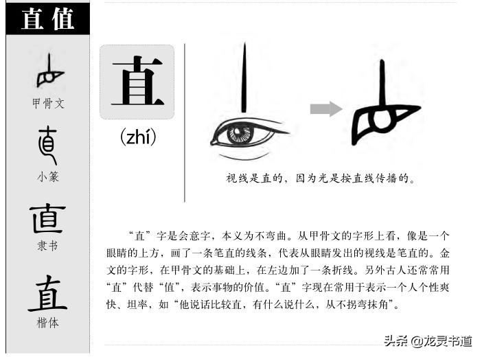 直 zhí:上下结构,上收下展。