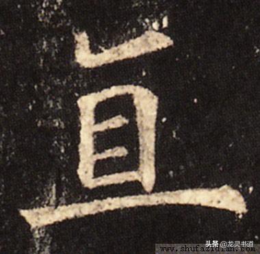 下部上窄下宽,要平稳端正。“目”字稍抗肩,不要写宽,诸横等距,相对上部要稍偏左。左竖注意起笔位置,斜起起笔,向下略左斜,稍重;横折实接起笔,横画勿重,稍扛肩,略呈拱形,到位后顿笔,稍内擫下行,厚重、稍长,与左竖呈相背之势;里面两小横虚接起笔,稍抗肩,勿重;底横与上横平行,略呈拱形,实接两竖。中间短撇虚接起笔,注意位置,勿长;最后底横起笔要左探,左边略抗肩,过中竖后渐平、渐重,使横画略呈拱形,笔势流动,收笔稍下拉,以稳住整字。