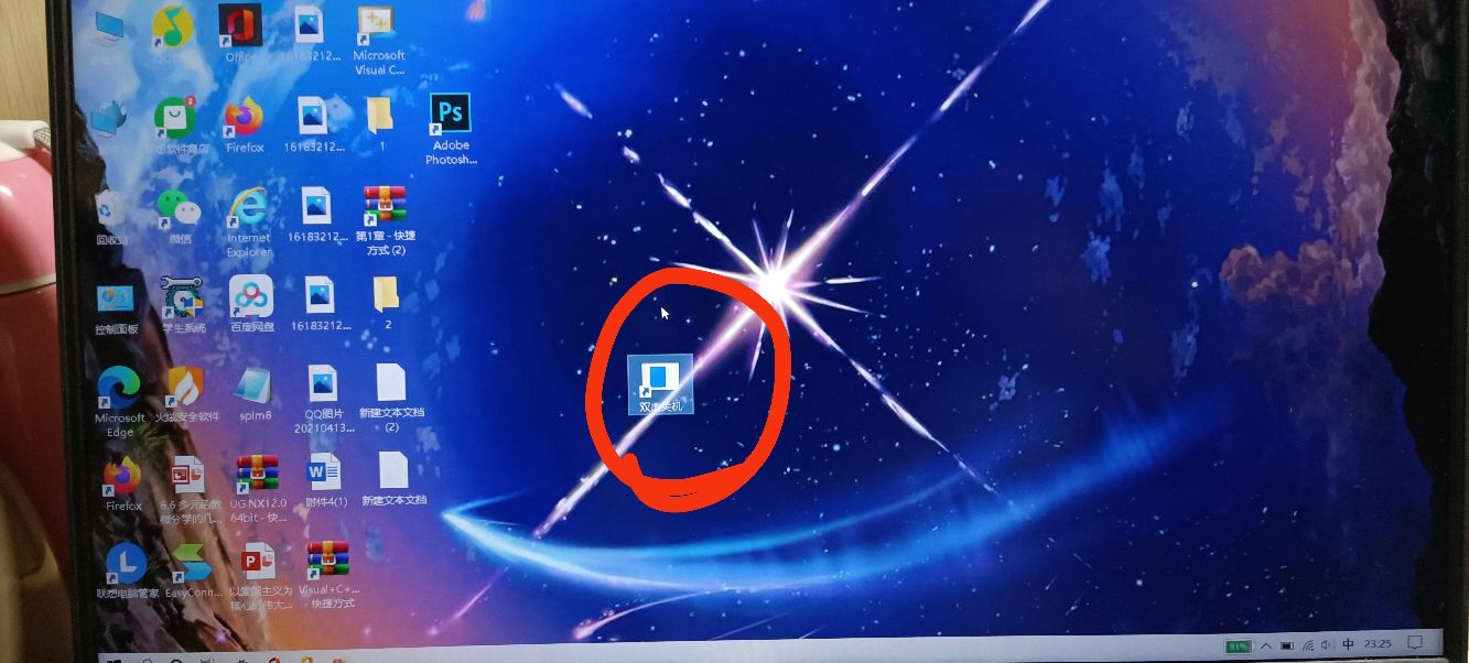 9,双击快捷方式,单击界面上半部分或者下拖上半界面就可以关机了