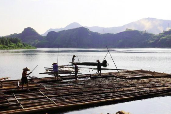 木排,在古代被称为“桴”,是运输木材的一种主要方式。伐木工人把木材砍好之后,用绳索等工具简单地将其捆绑在一起,做成木排,然后把木排放到水中。