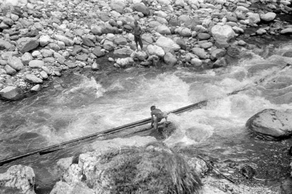 古时候的交通不如现在便利,所以那个时候的伐木工人在森林里砍了木材之后,想要将其运输出去就会非常困难。所以,他们因地制宜,找到了一个独特的、省力的运输方式——木排。