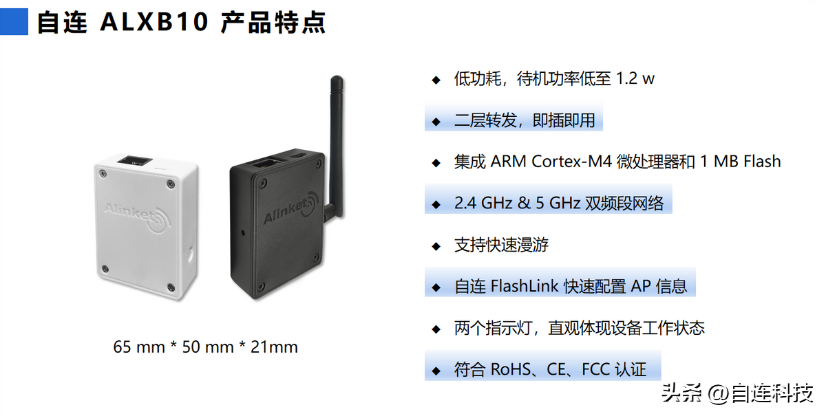 自连 ALXB10 实现以太网接口与Wi-Fi的桥接功能,通过配合使用自连自主开发的PC配置工具软件,可以灵活快速地将原有以太网设备无线化。