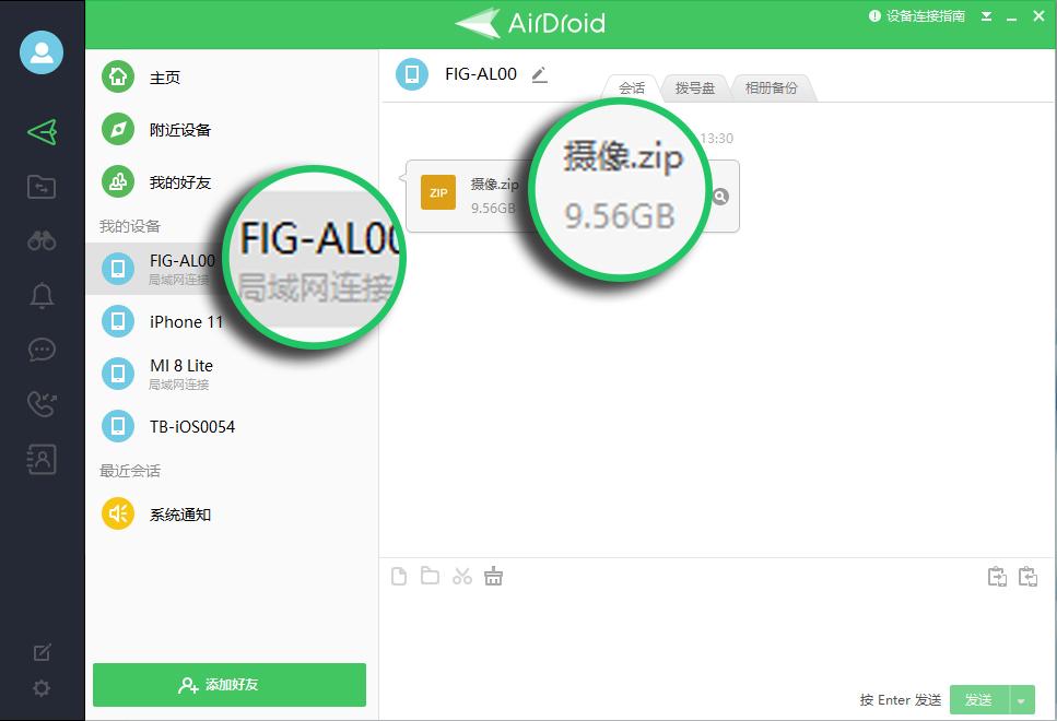 如果想要在电脑和手机之间传输大文件,建议使用AirDroid的客户端。AirDroid客户端在局域网内传输不限制文件大小。