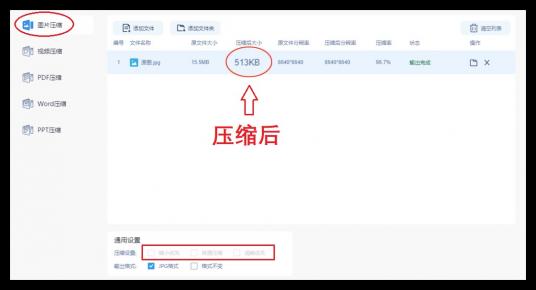 我们选择图片压缩功能,添加图片后,设置压缩模式,包含缩小优先、普通压缩、清晰优先。下面这张图片从