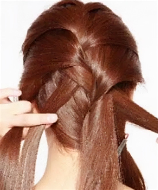 从脑后拉至刚才的三股辫中,加入三股辫一起编即可