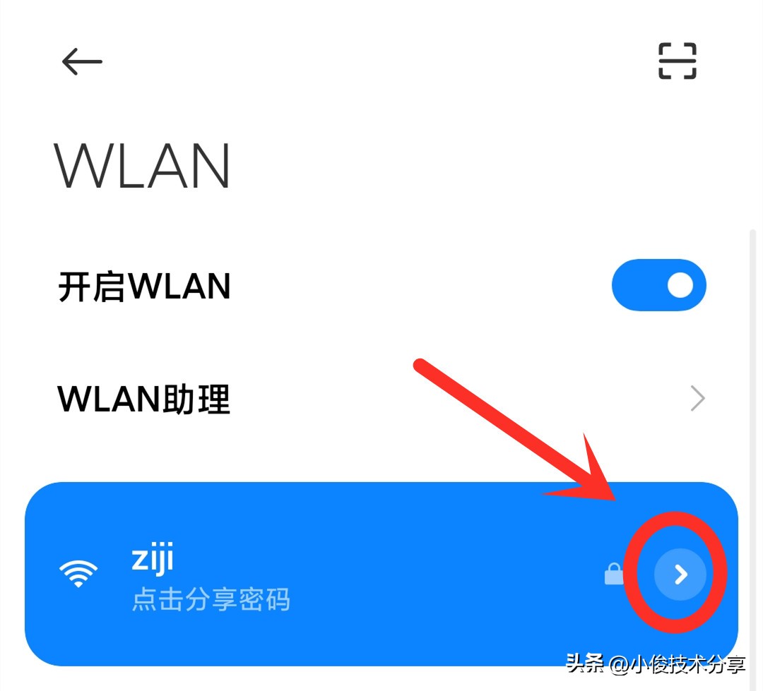 首先啊我们打开自己的手机wifi,查看一下已经连上的wifi,然后点击后面的箭头,进入到wifi详情页面
