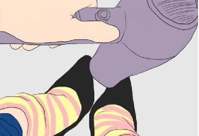 用小吹风机对准磨脚的部位吹,每吹几分钟停一下,这样反复几次,被吹过的地方就被软化许多。