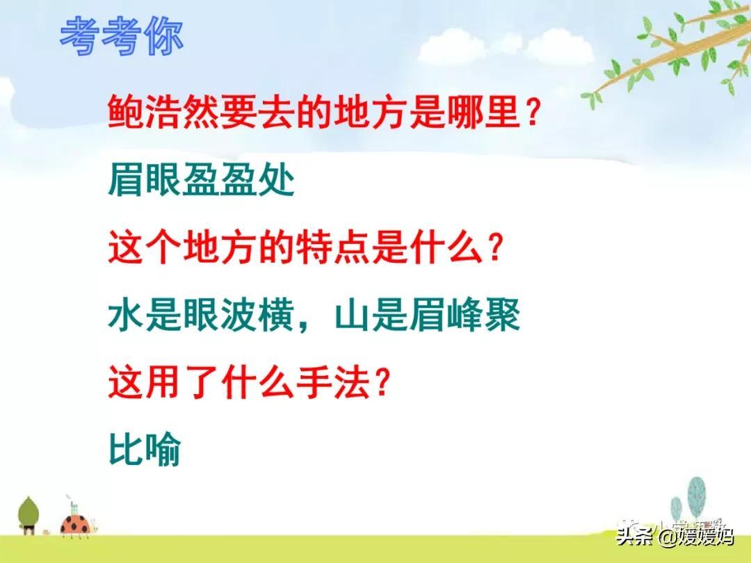 (7)眉眼盈盈处:一说比喻山水交汇的地方,另有说是指鲍浩然前去与心上人相会。盈盈:美好的样子。
