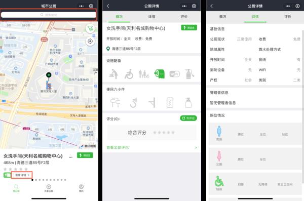 此时,你最需要的就是它了,“城市公厕云平台”小程序。为了避免“砸手里了”的尴尬,你还可以事先查看详情。大到是否厕纸、母婴室,小到wifi、厕所款式、冲水方式,都会事无巨细地告诉你。