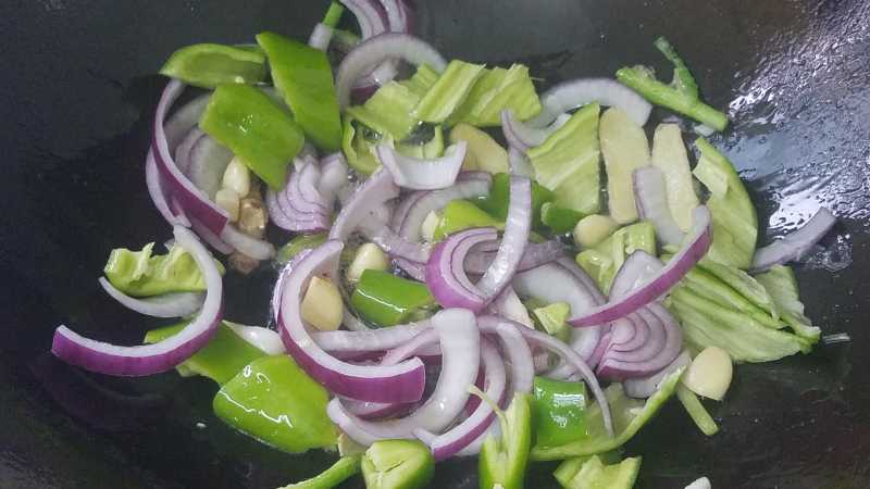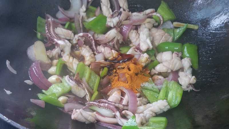 材料:鱿鱼、青椒、洋葱、葱姜蒜