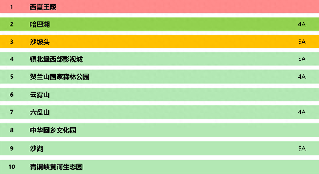 宁夏最值得去的景点排名第一的是西夏王陵,排名第二的是哈巴湖,排名第三的是沙坡头。