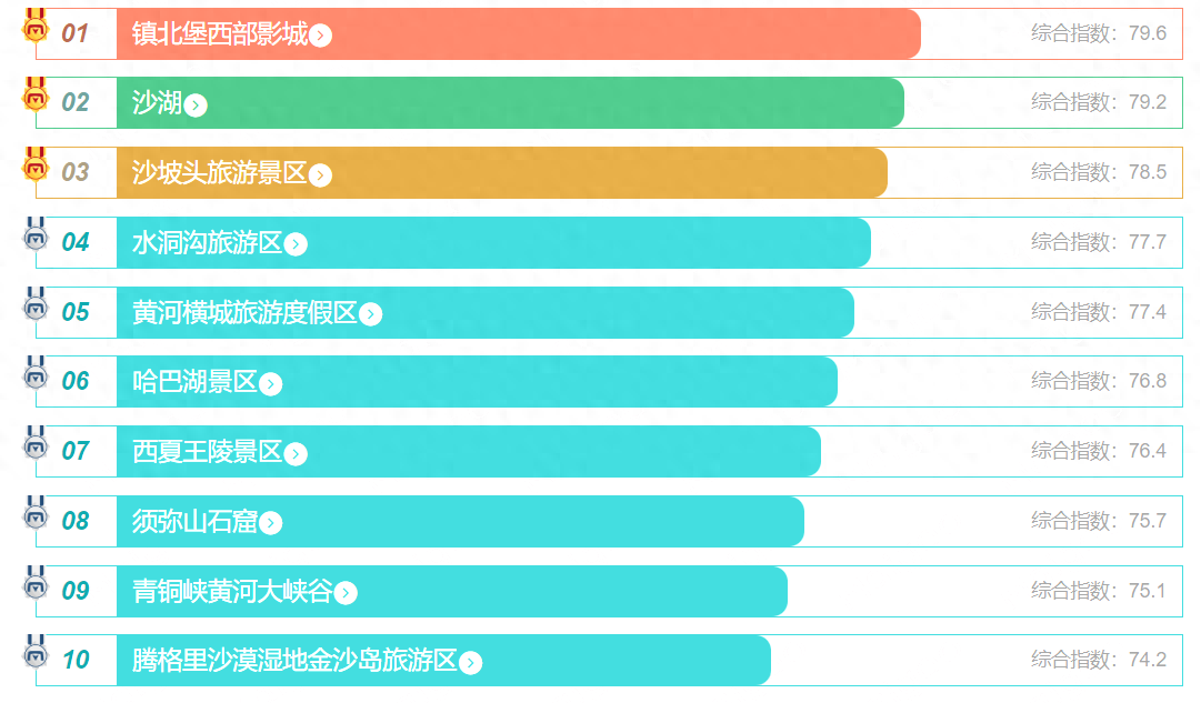 宁夏最好玩的景点位列第一的是镇北堡西部影城,位列第二的是沙湖,位列第三的是沙坡头旅游景区。
