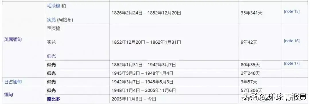 ▲从英属缅甸时期至今的缅甸首都所在地情况