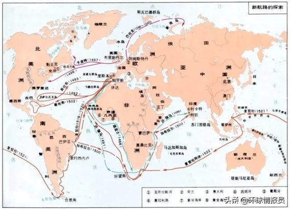 ▲地理大发现时期部分航线图