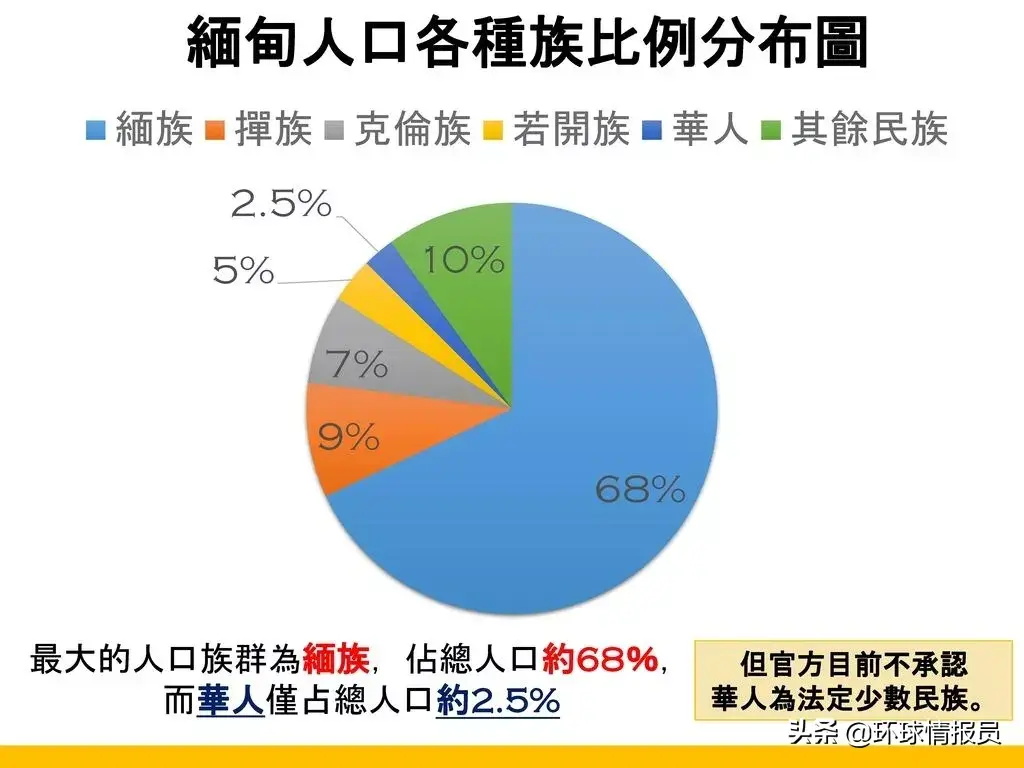 ▲缅甸主要种族人口比例。种族多元化的状况,对国家凝聚力的形成是不小的挑战