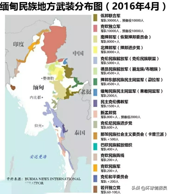 ▲缅甸各武装力量的分布情况