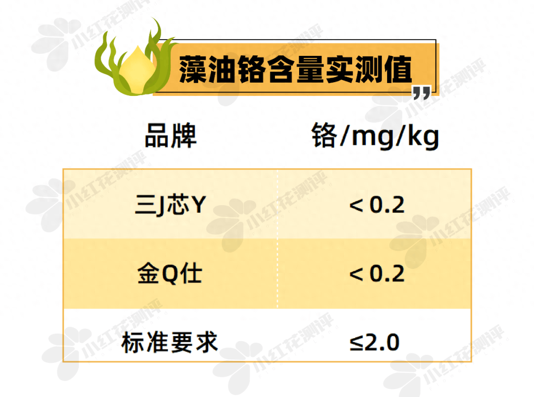 油脂新鲜程度主要看其过氧化值和酸价,数值越低表示油脂越新鲜。花爸同时还送检了这两款藻油的重金属铬含量。