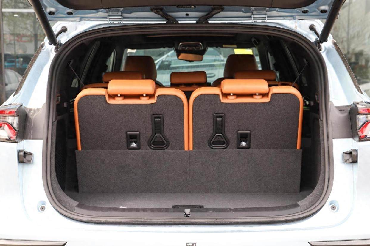 如果第三排座椅不放倒的话,它的后备厢空间就没有多少余量了,顶多能放下两个中号行李箱。把座椅放倒后的平整度还是不错的,可以拓展后备厢空间。