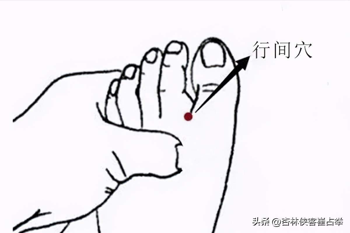 行间穴。行间穴是肝经上很重要的一个穴位,位置也很好找啊,在我们脚背上,大脚趾和二脚趾缝隙里,叫做赤白肉际处