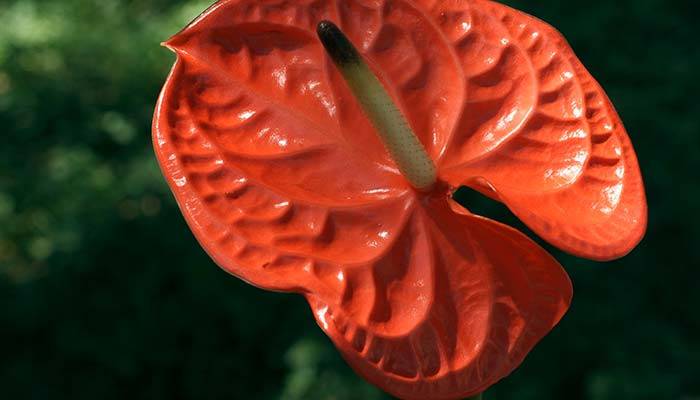 花烛花姿奇特美妍。花期持久,适合盆栽、切花或庭园荫蔽处丛植美化。
