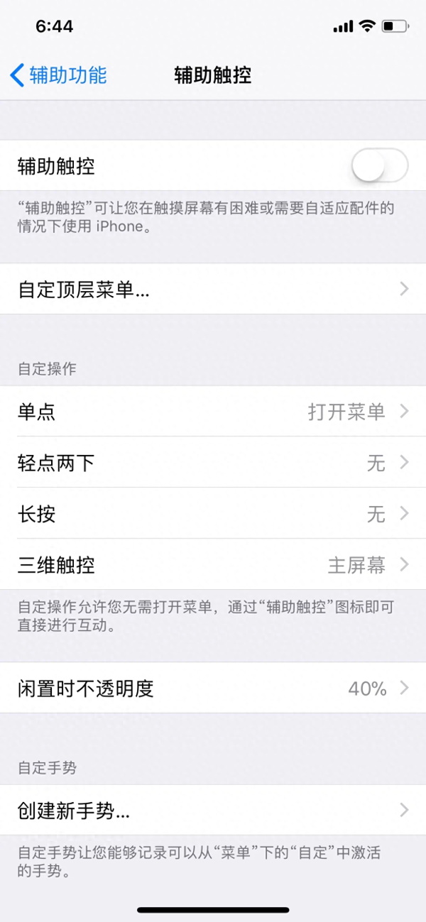 5.把“辅助触控”保持在打开的状态就设定好了